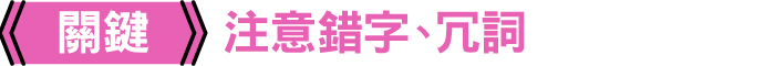 寫作是一場練習邏輯與文字的旅程,只要懂方法、勤練習,就能寫出兼具深度與亮度的高分作文。但找到題目重點、有了文章架構、遣詞用字也沒問題,卻因為錯字與冗詞這些小疏忽,讓文章失分就太可惜了!