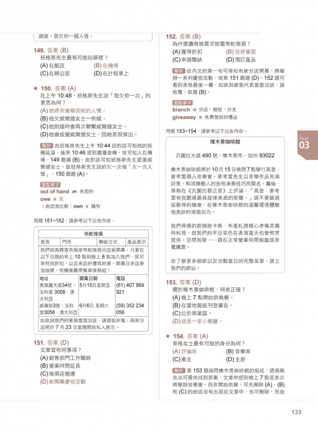 想考好多益,就要掌握「了解主體脈絡→剝洋蔥式理解細節→依序解決題目」的技巧。因此我在書中的解析,會依據題目順序逐題講解,讓學生清楚知道該從文本的何處找到題目答案。