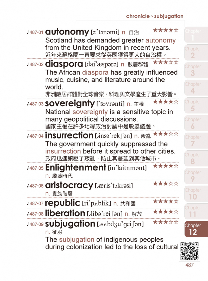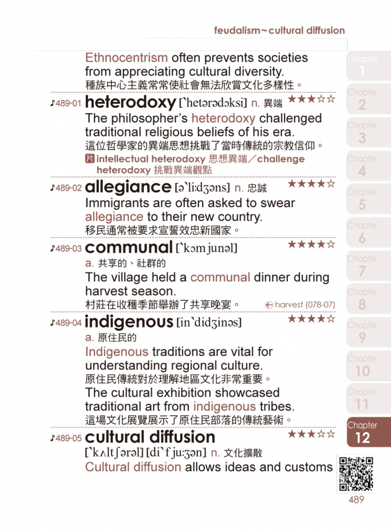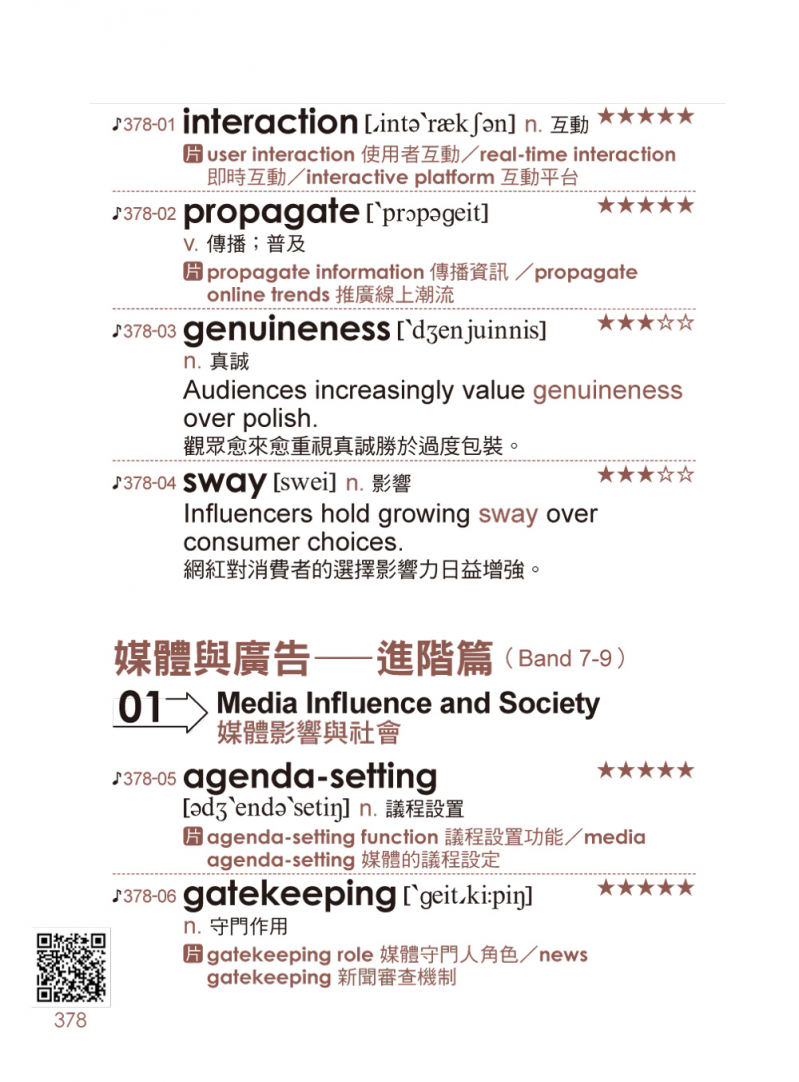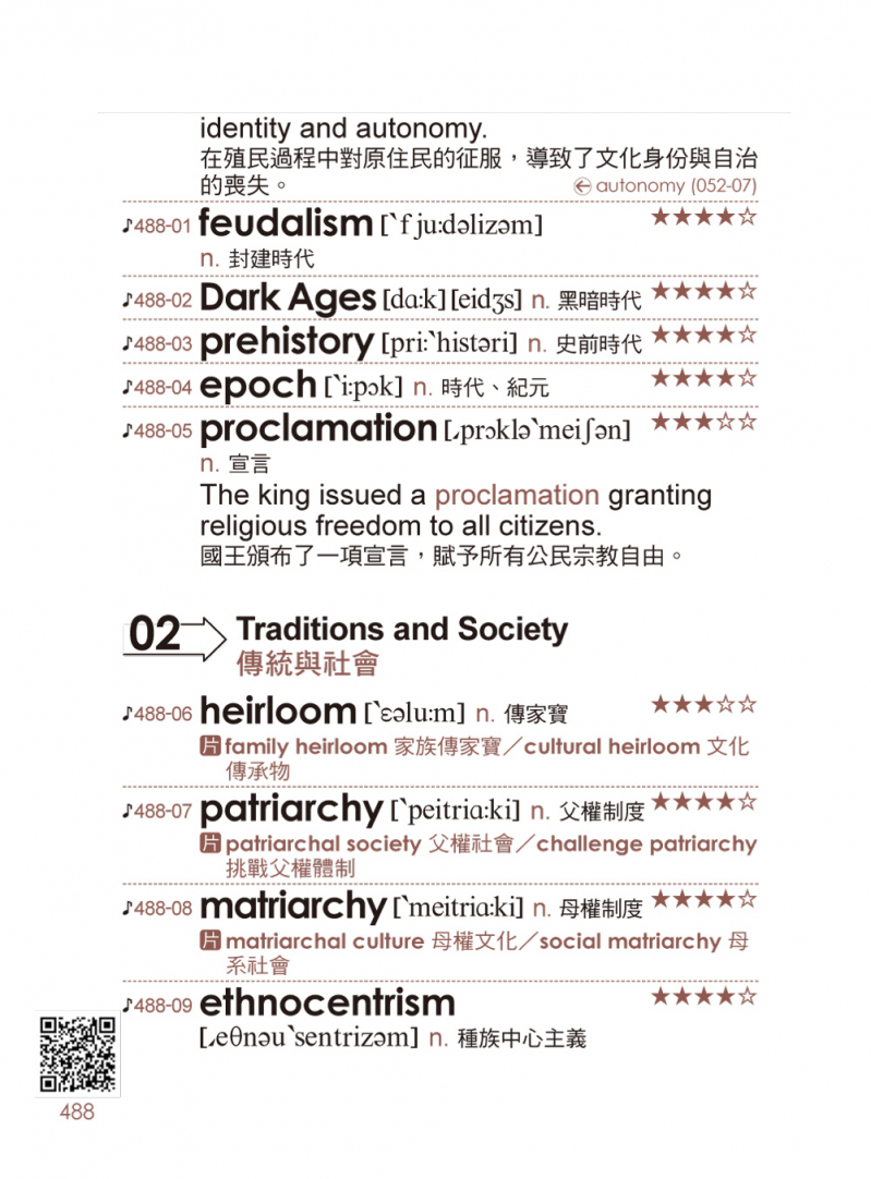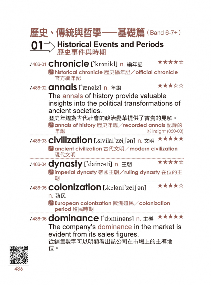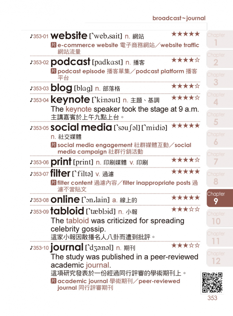 每個單字皆有雅思測驗出題頻率的燈號標示,星號愈多表示出題頻率愈高,也愈重要,方便時間不夠的學習者們,先從重點單字開始學,學習更有效率。