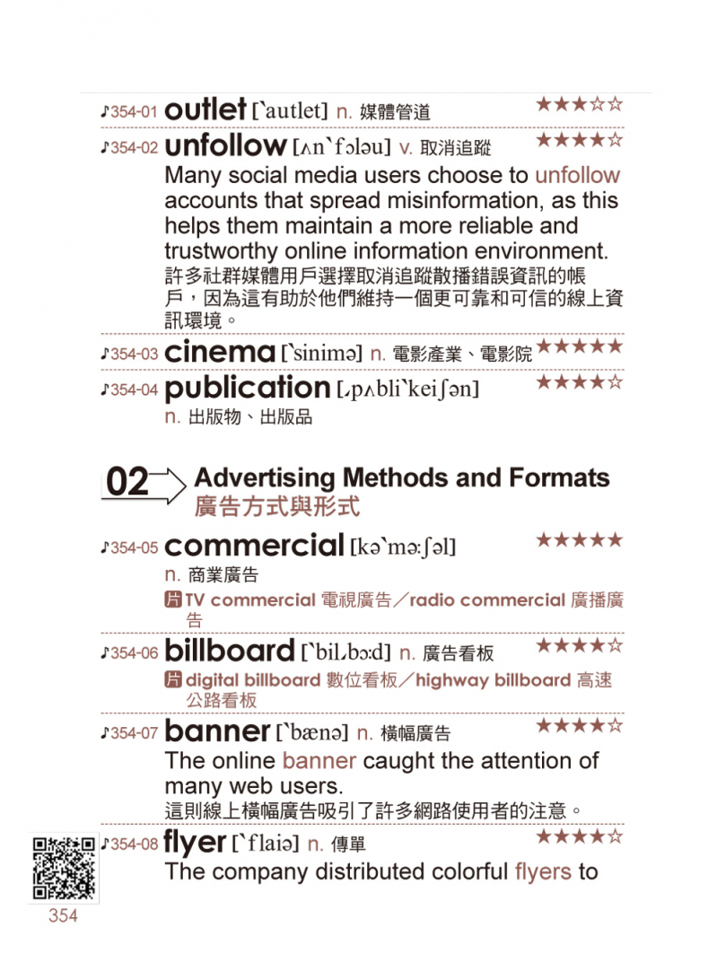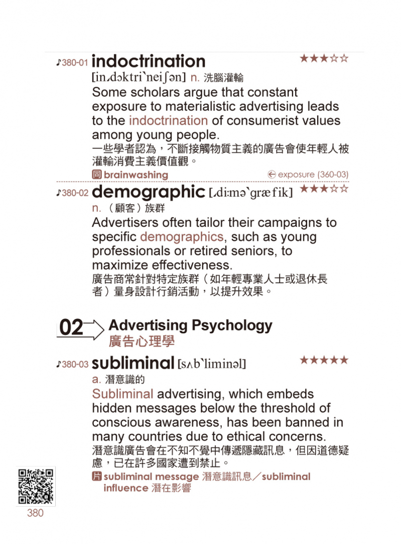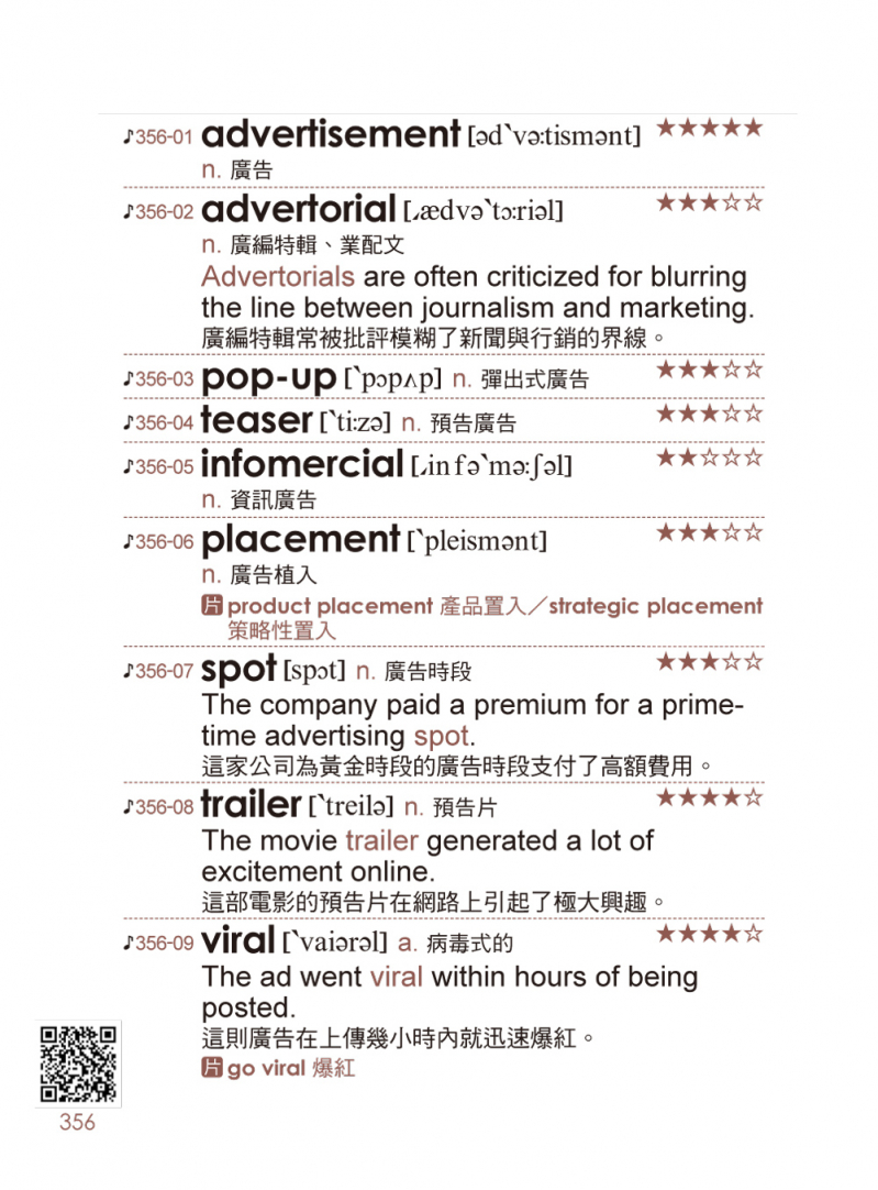 除了用眼睛背單字之外,用耳朵記憶、熟悉發音更是背好單字的訣竅。書中提供單字、例句與補充內容的音檔,只要搭配隨書附贈的Youtor App(內含VRP虛擬點讀筆),掃描書中QR Code下載音檔,只要下載完成後,就可以隨掃隨聽,離線也能聽,再也不用費心尋找CD播放器了。