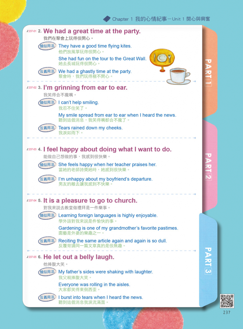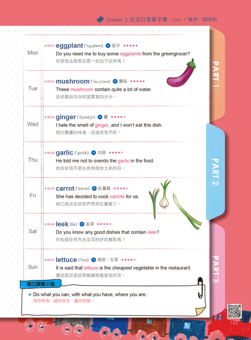 *音檔內容說明:本書為使學習者奠定穩固的基礎,在Part 1的部分特別錄製了單字、例句中英音檔,Part 2及 Part 3則配有單字中英音檔。