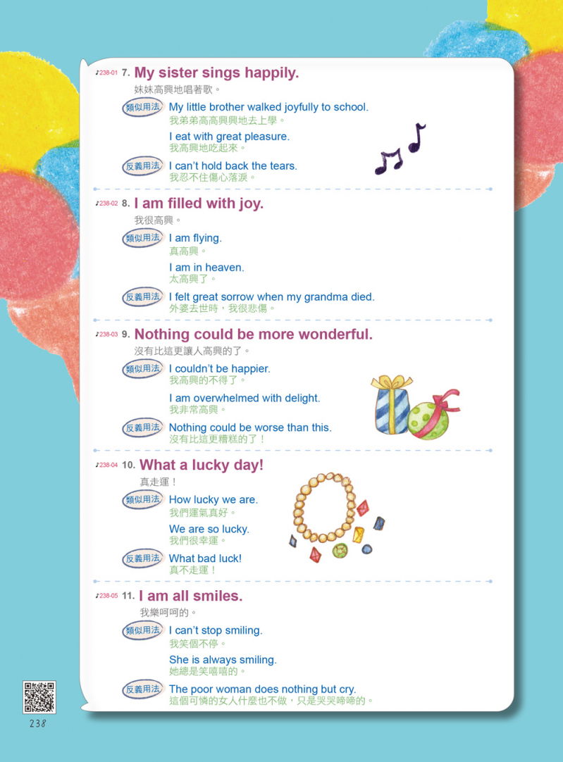 重要單字下方會補充相關詞彙、同義字、反義字或使用時的注意事項,幫助你在熟悉之後自然延伸。讓你在需要時,能多想到一個說法、多寫一句心情。