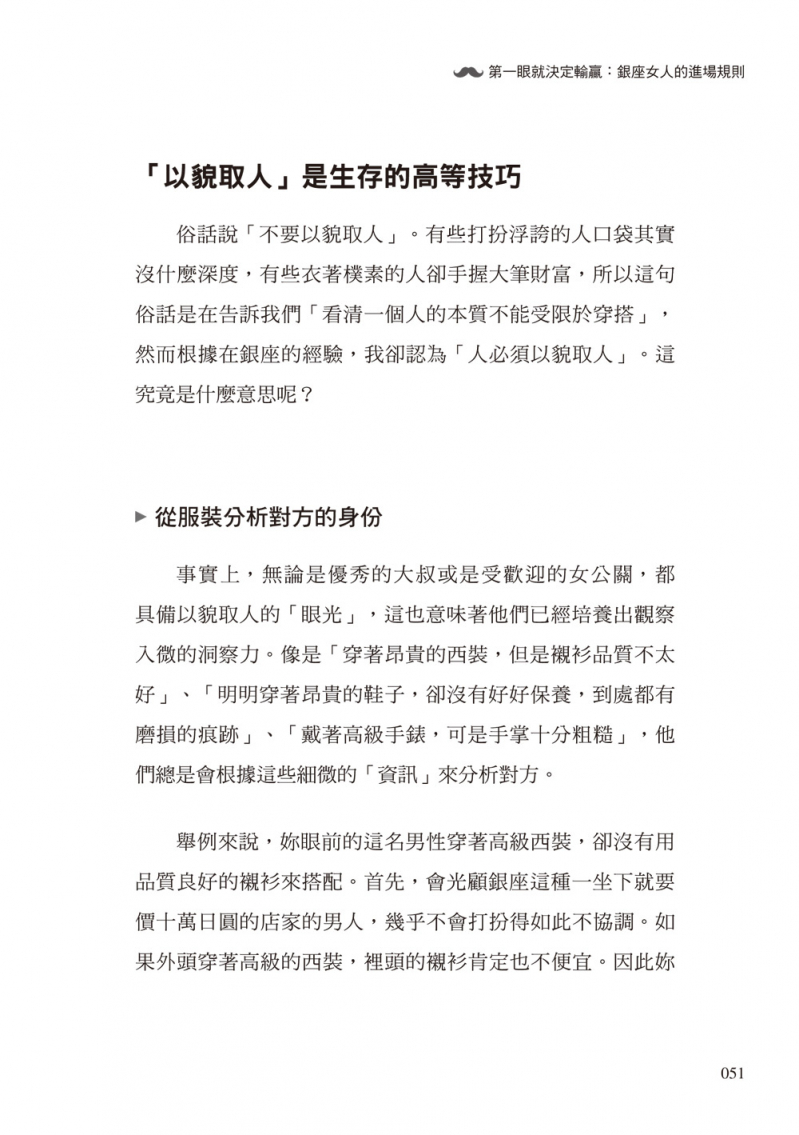 大多數人學到的都是「不要以貌取人」。 但正如妳精心打扮,想塑造良好形象的心態一樣,大叔也是如此, Serena在銀座學到的是—— 人的外在,是他最不會說謊的地方。