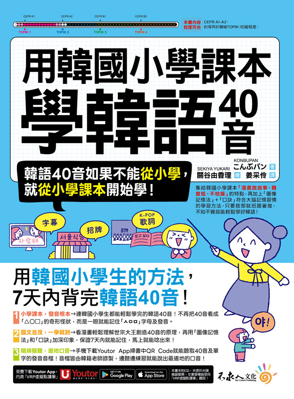 手機下載Youtor App掃書中QR Code就能聽取40音及延伸補充單字的發音音檔!音檔皆由韓籍老師錄製,邊聽邊練習就能說出最道地的口音!