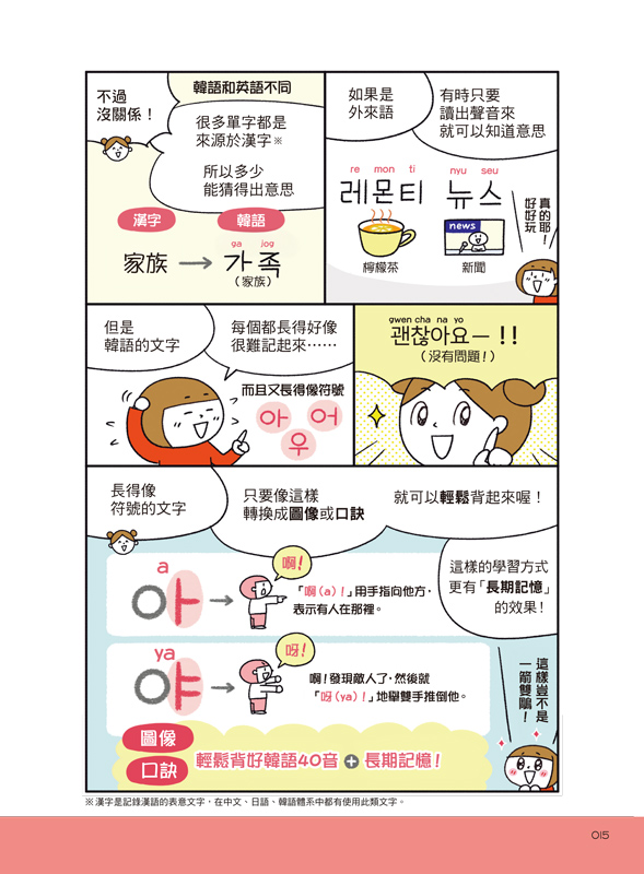 看漫畫輕鬆理解世宗大王創造40音的原理,再用「圖像記憶法」和「口訣」加深印象,保證7天內就能記住,馬上就能唸出來!