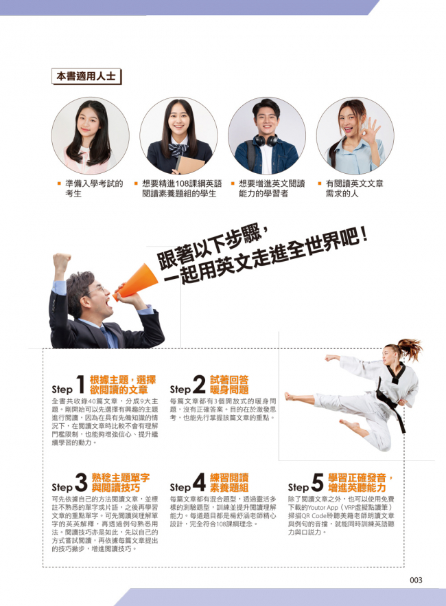 不管你是正在準備入學考試的考生,還是想要增進英文閱讀力的一般學習者,跟著以下步驟,一起培養英文閱讀核心素養,提升聽說讀寫力吧!