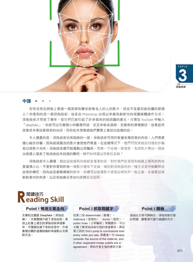 不僅有基本技巧說明之外,技巧理論搭配文章實例解說,解析文章架構,一看就懂超好學,有助於提升英文閱讀力。