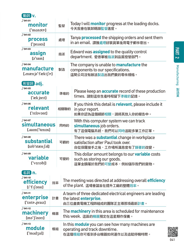 針對商務主題編寫的情境例句,難易度適中,讓你更熟悉如何將單字應用於日常生活。