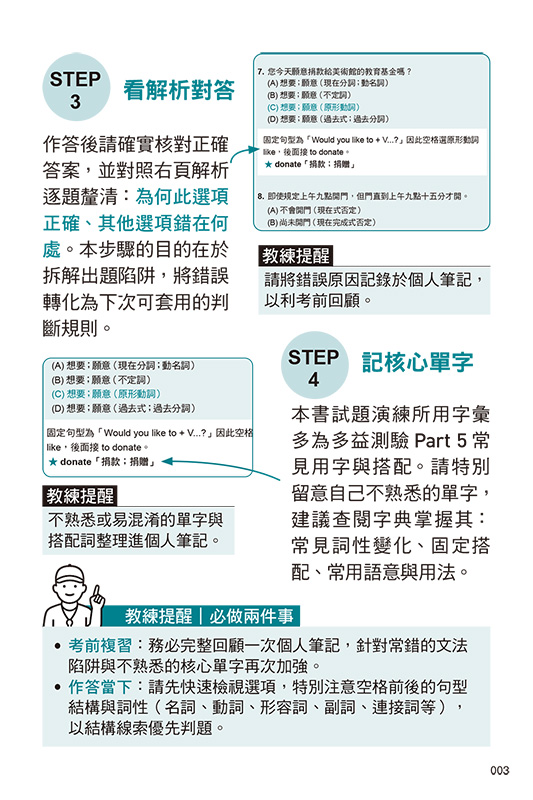 STEP 4|核心單字:補強多益Part 5常考字彙與搭配,讀題更順、判題更快。