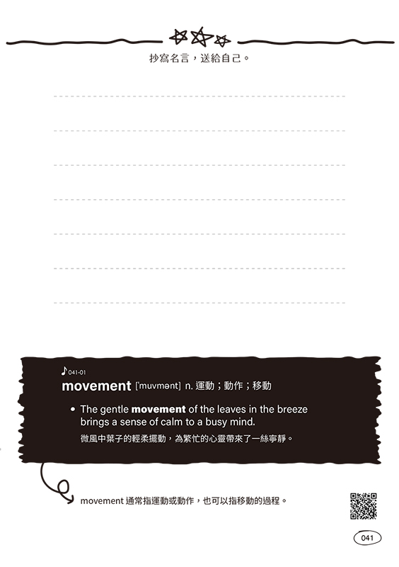No.17 movement [ˈmuvmǝnt] n. 運動;移動 |