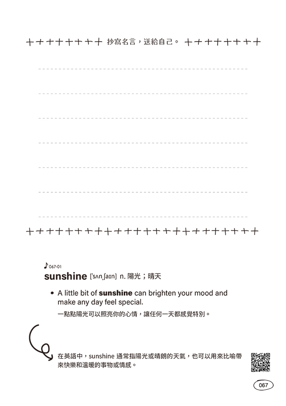No.30 sunshine [ˈsʌnˌʃaɪn] n. 陽光;晴天 |