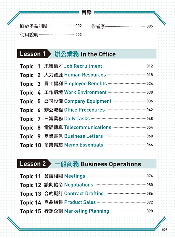 簡單、快速、有效,是我們編寫這本書的主要精神。期待為準備多益考試的你,提供一個好用的工具。