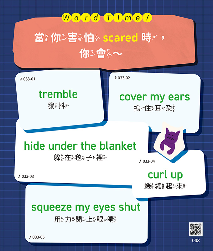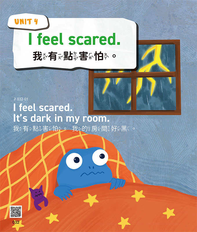 利用每個單元的互動塗鴉,練習用圖畫表達感受,在創作中理解情緒,也加深對英文句型的記憶。