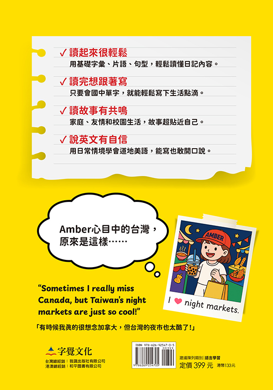 另外,我自己有兩個女兒,剛好是台灣、加拿大混血。她們現在也在台灣上學,因此書中的某些日記內容,是根據她們的校園經驗而來,她們也成了創造「Amber」這個角色的靈感來源。