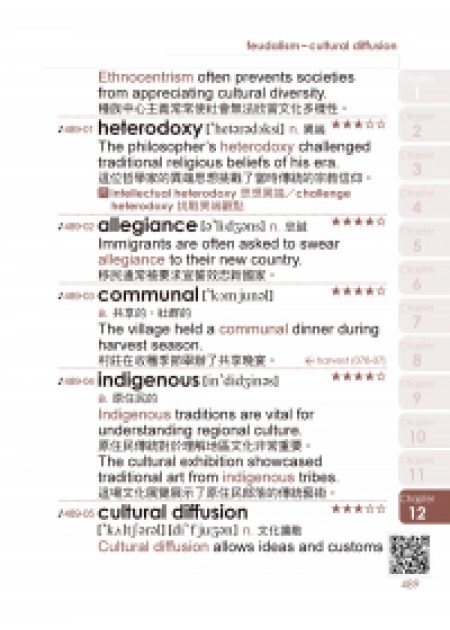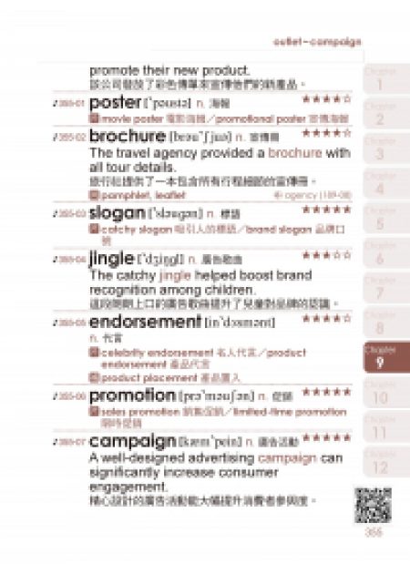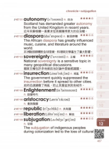 每個單字皆有雅思測驗出題頻率的燈號標示,星號愈多表示出題頻率愈高,也愈重要,方便時間不夠的學習者們,先從重點單字開始學,學習更有效率。