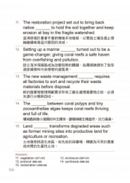 背完雅思單字後,可以翻到最後練習雅思單字填空題,且題目以單字的例句為基礎,除了能測驗單字是否熟記外,也能順便複習之前學過的內容。