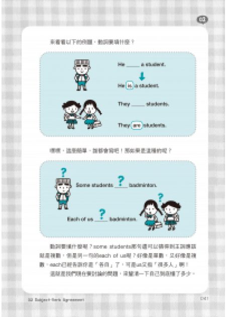 於是我們便想到,應該還要再編寫一本更詳細的英文文法書才行啊!畢竟英文文法還有很多非常有趣的內容,值得深入學習,而且可以延續我們出版社的風格,將它們用最容易理解的方式呈現,讓讀者學習的過程快速又有樂趣。