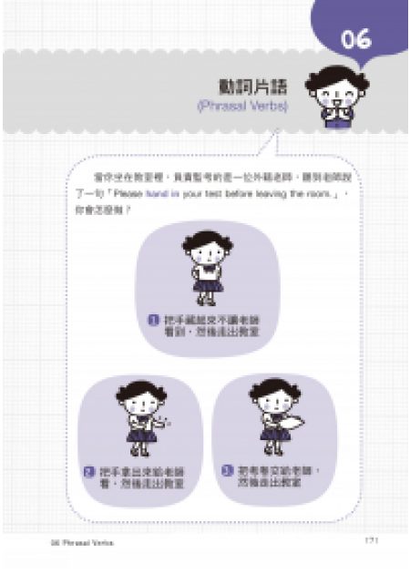 簡易的文法用簡單的「單圖」輔助說明!以往學文法時總是學了又忘,那是因為純文字的學習效果有限。在較簡易的文法說明時會搭配簡單的單圖,獨特的圖像式記憶法讓你學得快、記得牢!