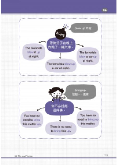 英文有相當多的用法是加上一個介系詞或副詞,整個片語或整句話的意思就會變得不同,可以延伸出許多意義。以往總是不明白誰該跟誰搭在一起,現在用文字搭配「進階圖解」說明這些有延伸意義的文法,看一眼就懂!
