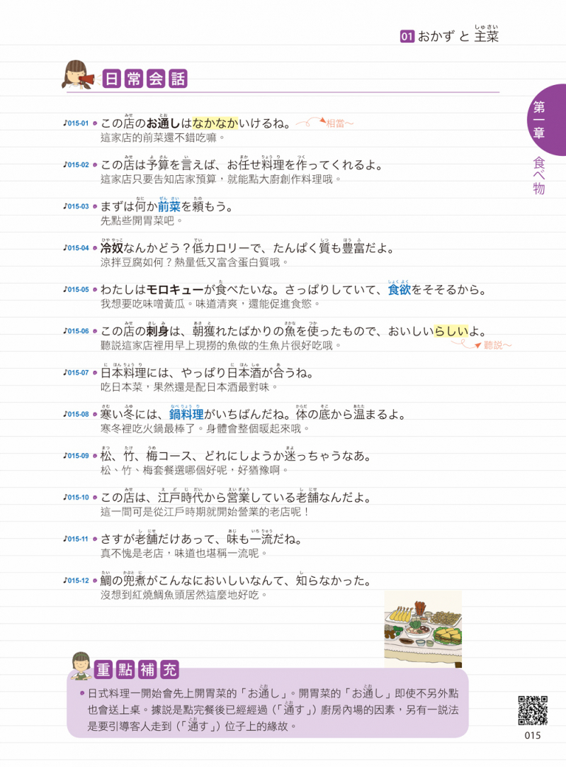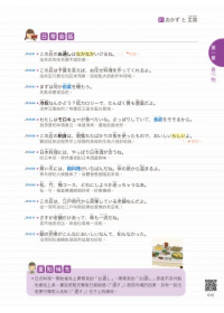 要學好一門語言,除了基本的單字、會話之外,文化背景以及生活常識也很重要,本書適時補充該單元的文化重點、特殊風俗習慣與文化等,讓你學好日文之餘,也學好文化知識!