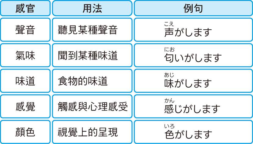 在學日文時,你有沒有覺得「感覺到~」、「有某種味道」、「聽到什麼聲音」這種描述,好像用法很多,句型都不太一致?