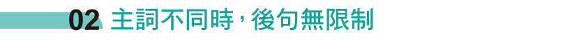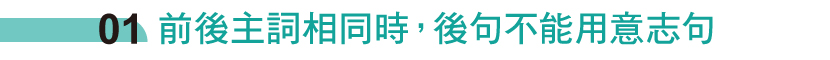 如果前後句的主詞相同,以下這些句型就不能接續在後面: