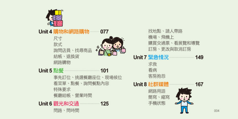 從基本問候到開啟話題、旅遊、點餐、購物等,