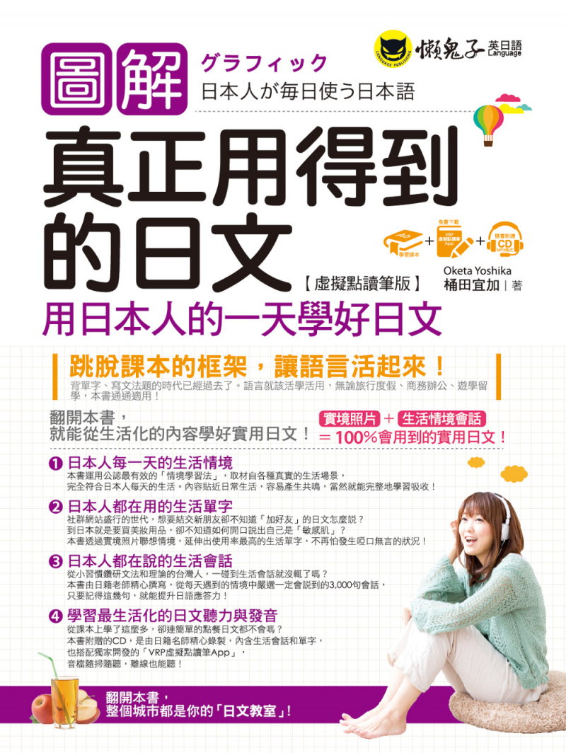 只有文法理論和單字絕對不夠,想要完整地學習真正用得到的日文,那就立即翻開《圖解真正用得到的日文:用日本人的一天學好日文》,學習每天都會用到的日文,就能與日常溝通零距離!