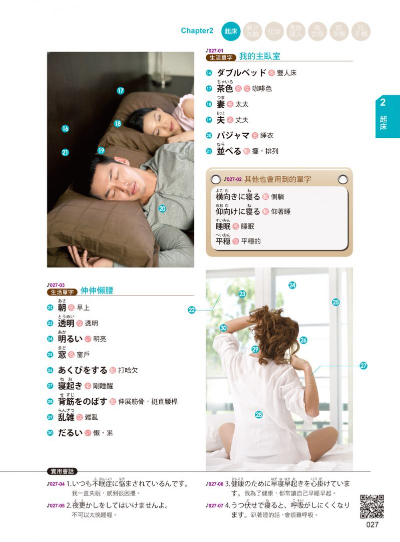 全書取材自各種真實的生活場景,完全符合日本人每天的生活。本書運用公認最有效的學習法:「情境式學習法」,不用出國也能了解日本人的一天,沒有親身到過日本,也能學好日文!