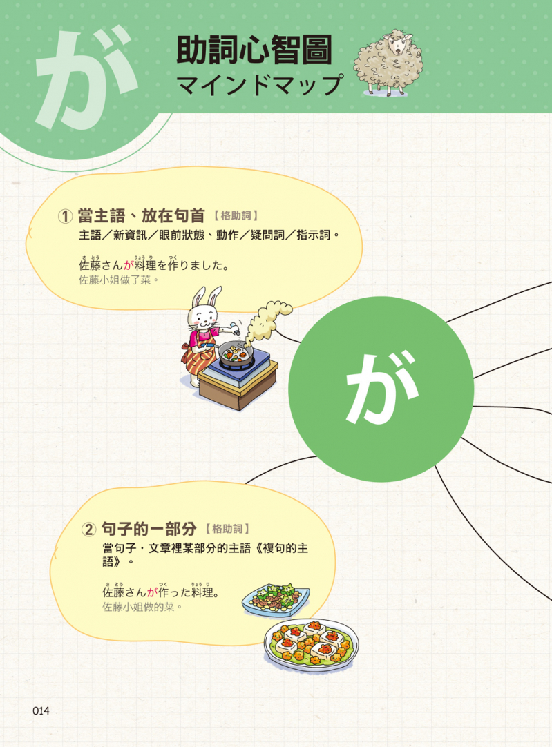 首先要跟讀者們說明《世界最強日文助詞》裡介紹助詞的方法。以「が」來說,「佐藤さん