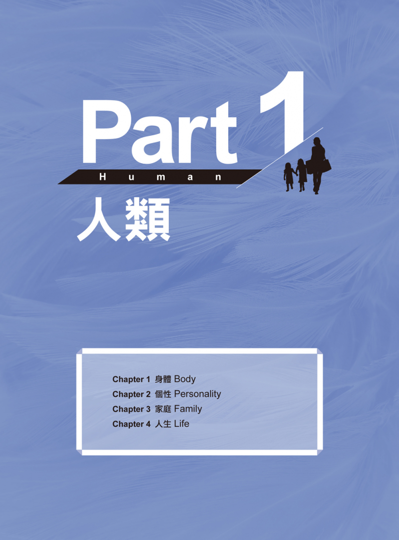 9大主題 X 39個章節 X 162個單元,不管是看得見碰得到的人、事、物、場合,或是看不見摸不著的想法、動作、形容詞,都能夠一網打盡。