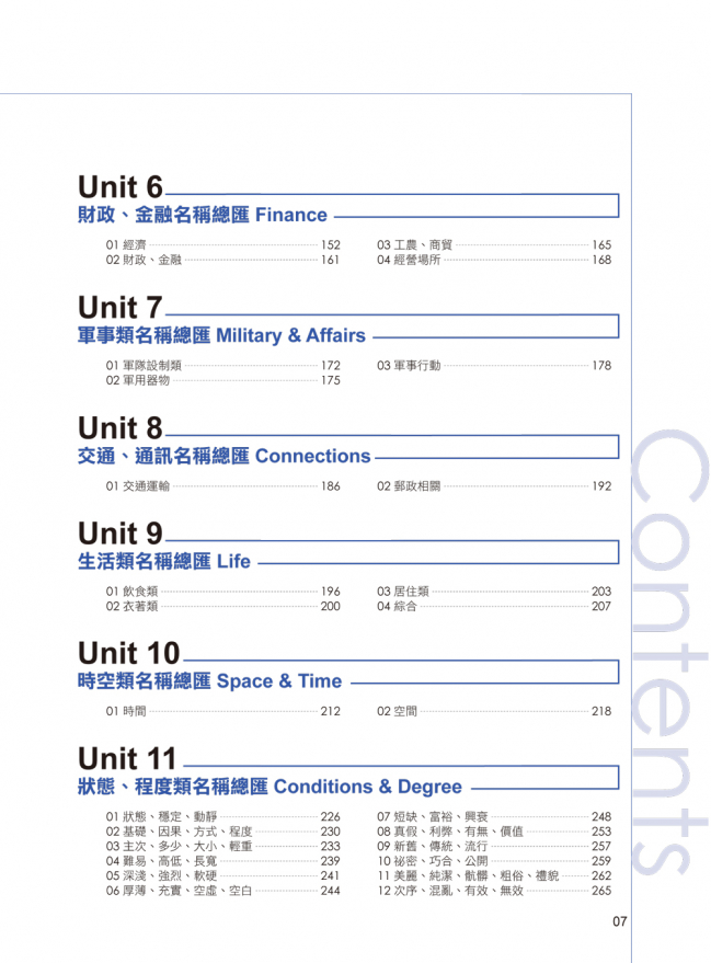 本書根據托福歷屆考古試題、模擬題型去編寫,共收錄5,400餘個單字,以學科(學術)、文化、技術工程、教育、政治與法律、財政與金融、軍事、交通與通訊、生活、時空、狀態與程度、運動與變化、肢體動作、情感與心理、人際互動等15大單元,分門別類介紹各項領域的單字,期能幫助考生有系統地學習和記憶單字,順利應試。