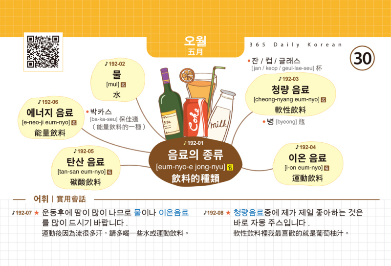 本書使用心智圖歸納整理,並搭配常用會話,讓你左右腦同時運作,將韓文單字、會話輕鬆一網打盡。