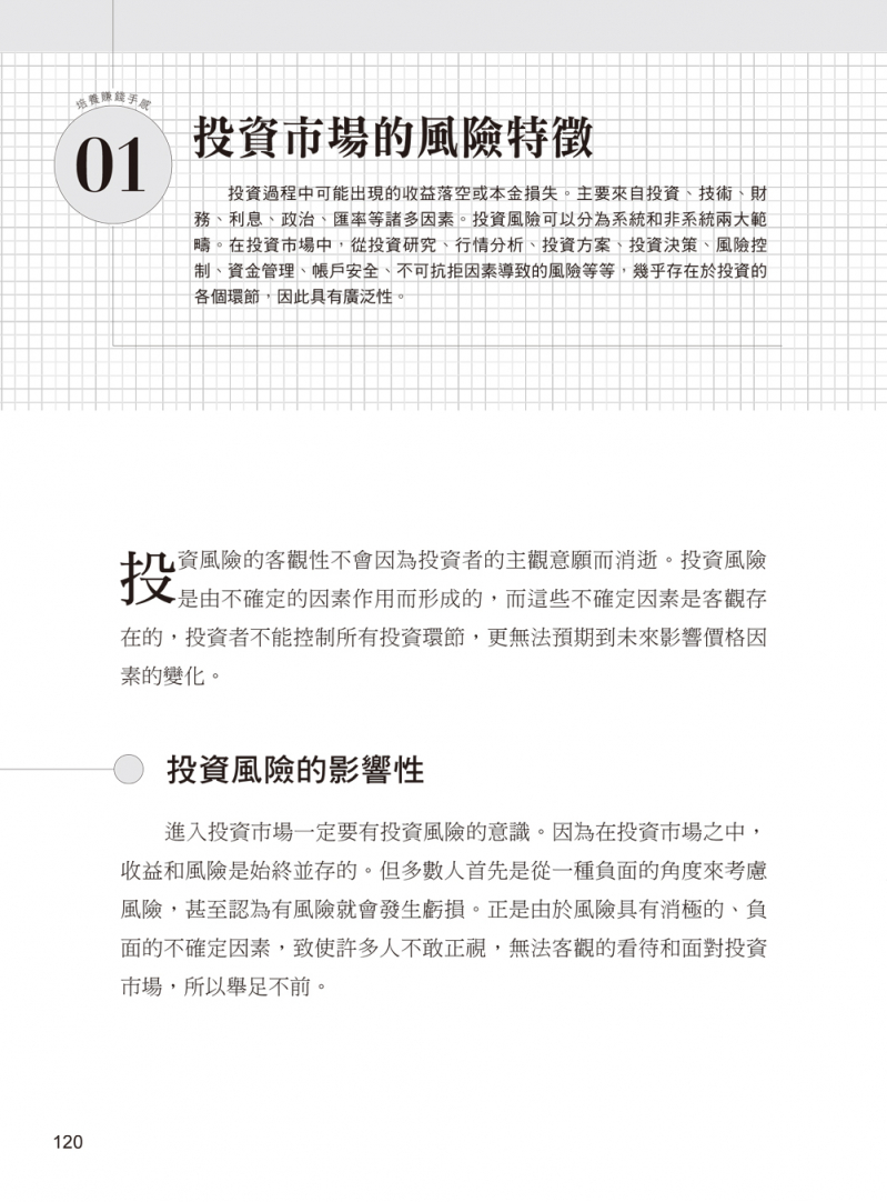在市場不景氣的時候,投資人都會把「市場不好」掛在嘴邊,投資行為也非常謹慎,對價格異常敏感。雖然變幻莫測的市場大大地打擊了人們的投資熱情,但也有人憑著穩健的投資方式取得不錯收益。即使有人預言接下來的市場依舊不太景氣,但這不等於所有的人都理不好財。其實,愈是不尋常的局面愈蘊藏著巨大的機會。