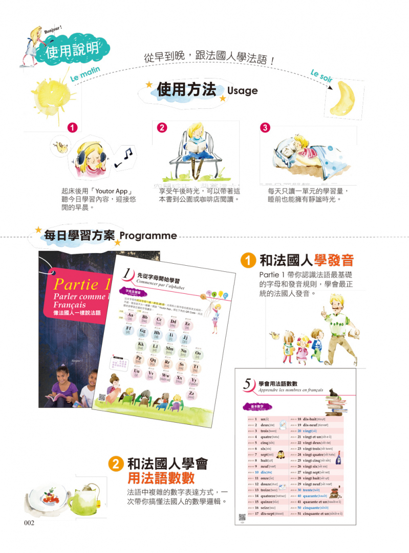 希望這本書能成為學習法語、文化、歷史的實用工具,更如同一本旅遊指南一樣,讓你在旅行時可以拿在手上,秀出書上的圖片及照片給你遇見的人,透過分享交換將會讓你的法文及生活都更加美好!