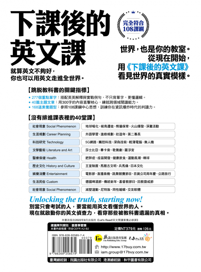 本書改版自2022年09月出版的《Let's Read!英文閱讀素養必修課》