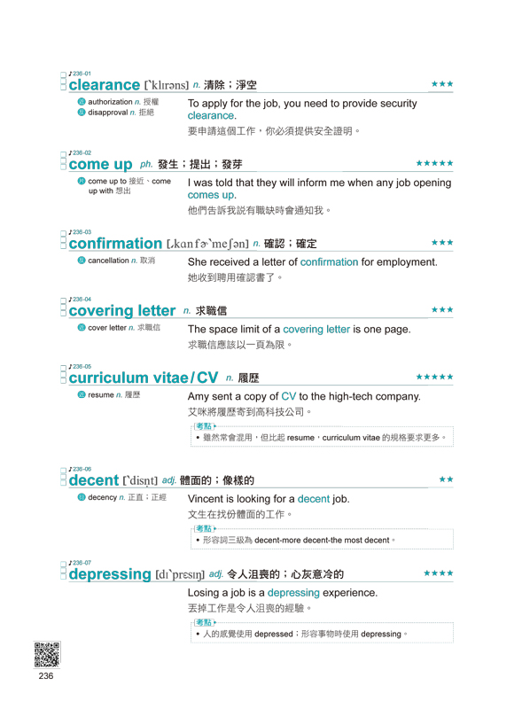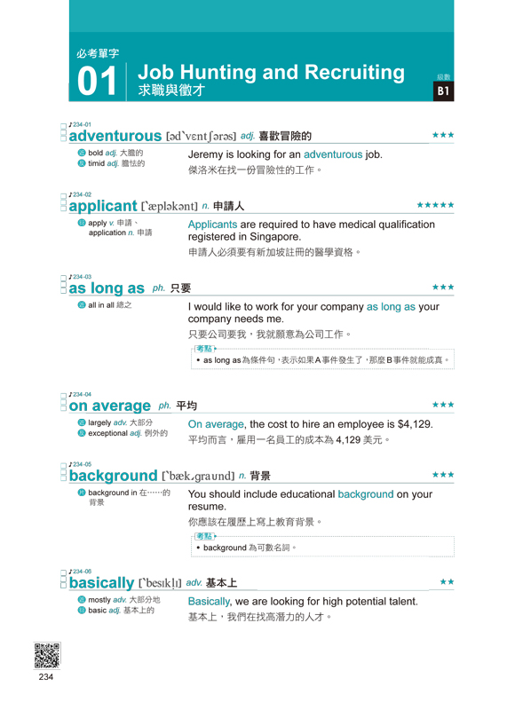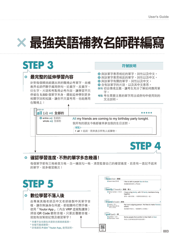 尤其是在職場上,會出現專有名詞、有多種 email 書寫模式,更包含特殊的行話等,要釐清這些用語及用字,這本由原版《決勝領思Linguaskill 5,500 單字》全面升級改版的《決勝領思CEST領思前導測驗5,500單字【職場英語Business】》,絕對可以幫助讀者在學完一個單字後,馬上實際應用在各個職場情境中,也透過前導測驗的邏輯引導,讓你實際應用之後,牢記在心中。