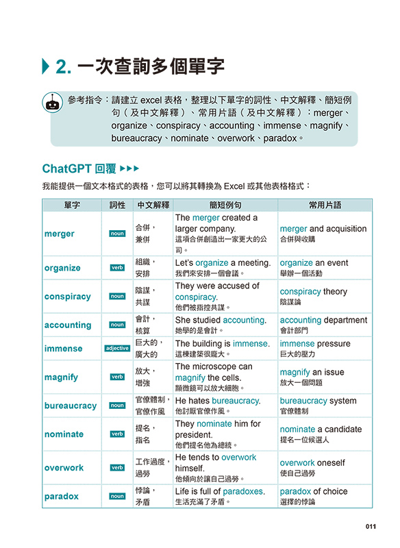 你可以使用ChatGPT生成更多適合你的練習題和範例句,還能透過ChatGPT擴展詞彙量、提高閱讀理解能力和寫作技巧。