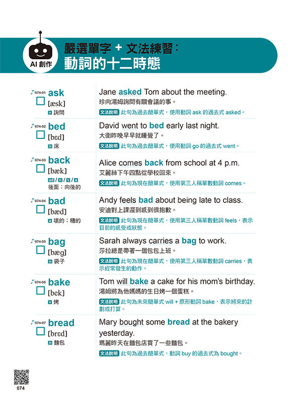 5. 精選文法範例句:由ChatGPT依主題文法編寫的例句,讓你在認識單字的同時也學會文法。