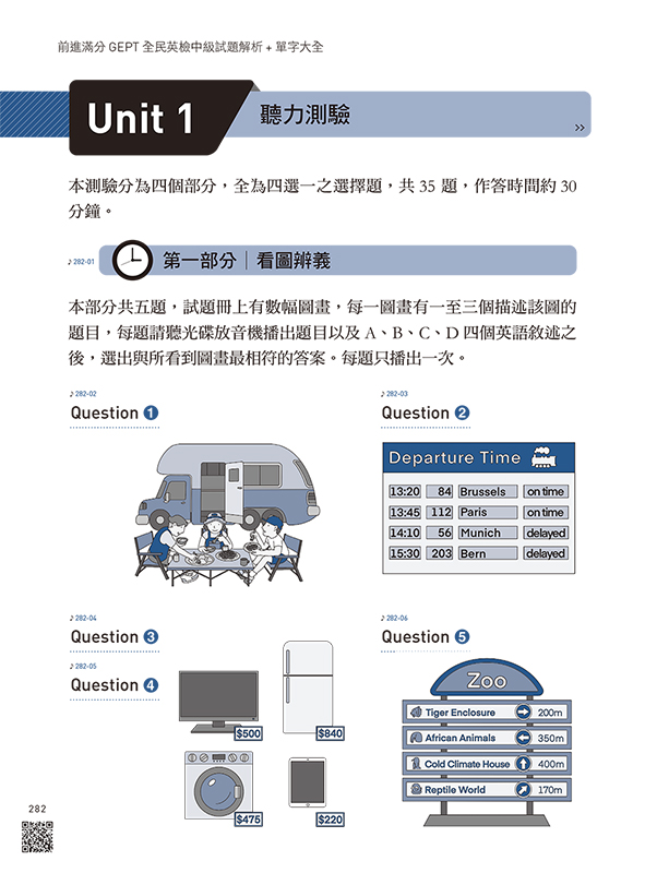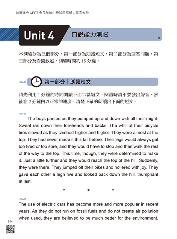 收錄全民英檢中級「初試 + 複試」完整擬真試題一回。瞭解考試題型並依照正式考試的作答時間,實際進行一次模擬測驗,從中找到自己需要加強的環節。