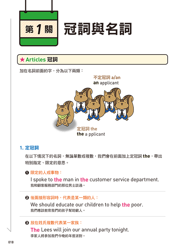 每單元皆以精彩插圖呈現文法概念,陪伴讀者透過圖像記憶,讓文法觀念深植腦海。