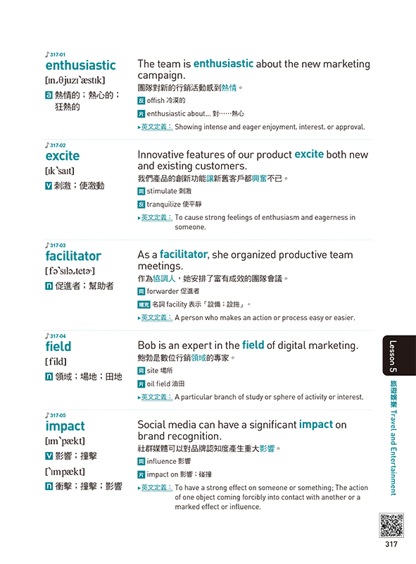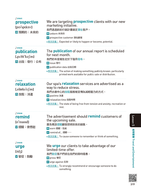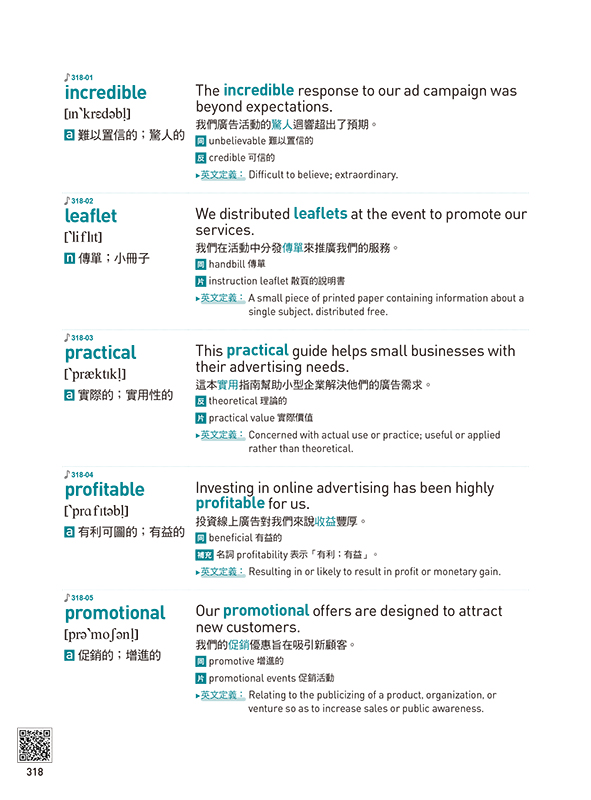 搭配25個多益核心單字及其例句。這些例句不僅緊扣單元主題,更能讓你集中精神,深度學習該字的用法。同時,這本書還提供了