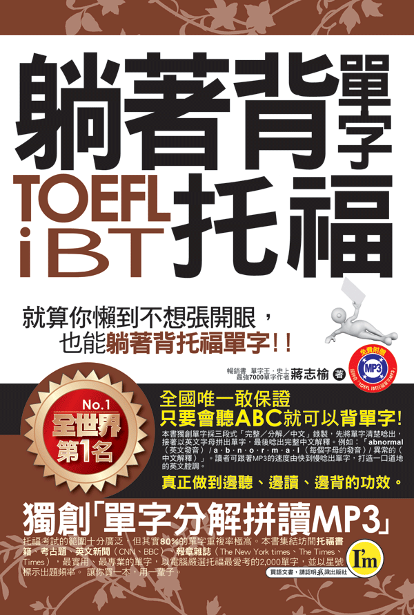 獨創「托福單字分解拼讀MP3」,坐著背、站著背、躺著背、邊走邊背,無論無何一定要把托福單字背起來!!!