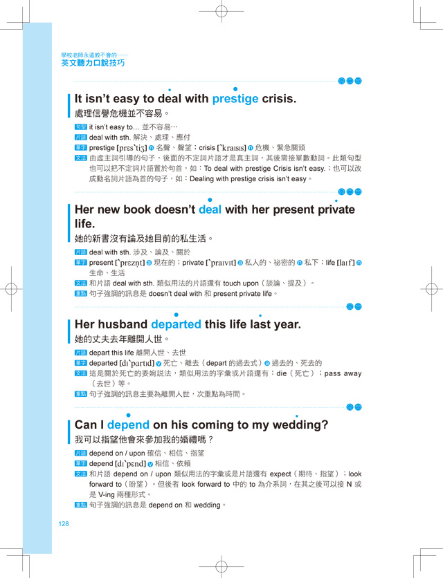1,064句會話、1,064個片語、5,128個單字、句型、文法與重點解說。