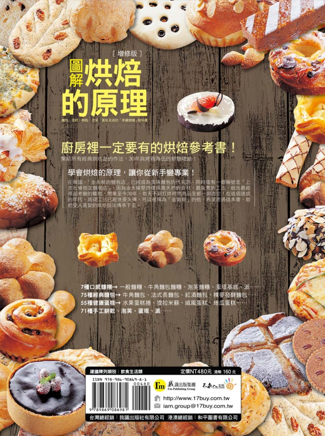 ─為了將這30餘年成功的烘焙經驗與技巧在《圖解烘焙的原理:麵包、蛋糕、餅乾、泡芙、蛋塔及派的「手感烘培」教科書(增修版)》中展露無遺,同時讓一般家庭也能毫無器材顧忌地發揮,金永模大師特別使用「家用烤箱」做出本書所有成品,證明「在家就能做出熱門麵包店的人氣商品」!