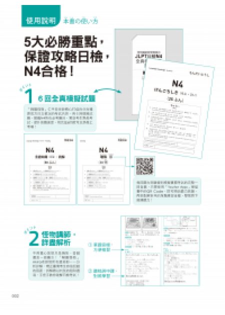 學完初級到中級日語後,以N4為目標的同學應該很多吧。但即使學完初級日語,如果沒在一定程度上理解N4的出題模式,考試時就無法發揮本來的實力。希望讀者們能活用這本書,習慣各種試題模式的同時,能理解還未能做到的事,掌握自身的實力。