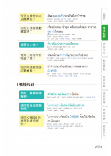 這一本書主要針對日常生活以及旅遊的讀者編排,相信非常適合常到泰國旅遊觀光的朋友所使用。根據各種不同的情境分類,介紹常用的單字以及簡單的句型,讀者在緊急時可以方便尋找,同時版面也相當活潑有趣,對於想要增進單字量的泰語學習者,也非常地有助益。學習語言,最怕的是鑽研艱難文法、死氣沈沈地背誦,很多會話書籍,卻跳脫不了這個泥沼,日常生活會話非常地活潑,不太可能去預設情境對話,讓讀者去背、去模擬,因為對話不可能完全照著課本來。