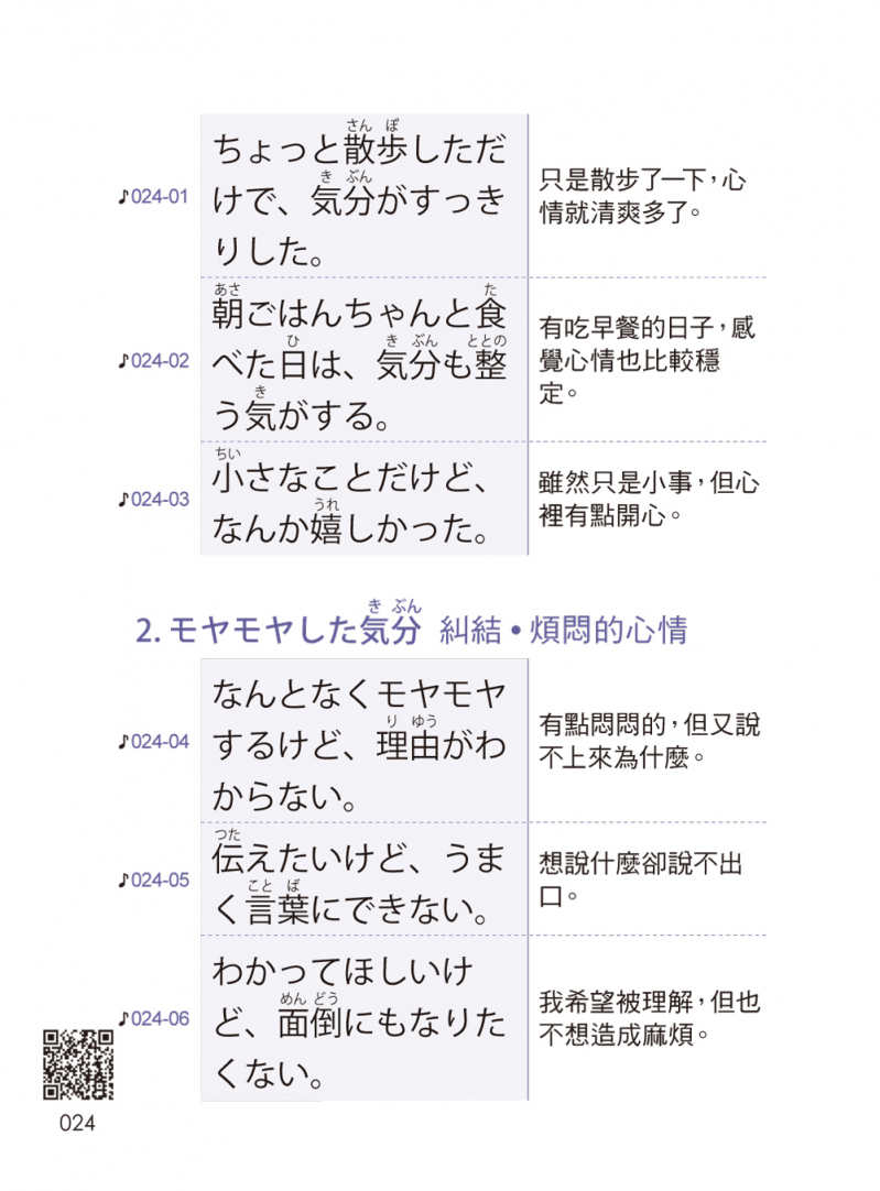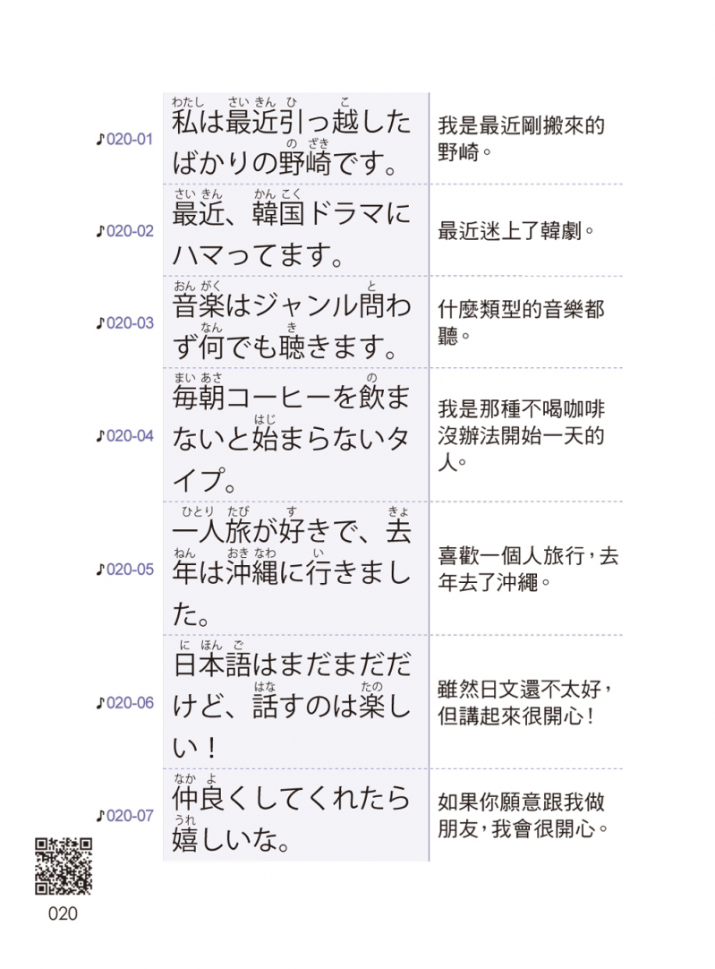 日語會話就是要邊聽邊唸,才能培養語感、正確發音。只要用「Youtor App(內含VRP虛擬點讀筆)」掃描書中QR Code即可隨時聆聽日籍老師的日語會話音檔,同時鍛鍊日文聽力跟口說能力。