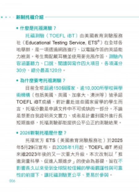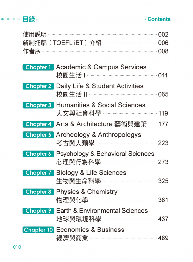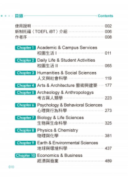 托福測驗TOEFL的主題上至天文、下至地理,本書全書單字按照托福常考主題分類,共收錄超過3,500個單字,邊背單字也能邊熟悉托福的出題類型。