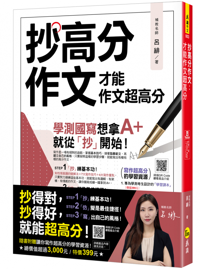 呂緋老師帶你破解學測國寫題,只要跟著搭配《抄高分作文》附贈的數位資源進行學習,就能輕鬆在國寫拿到高分。